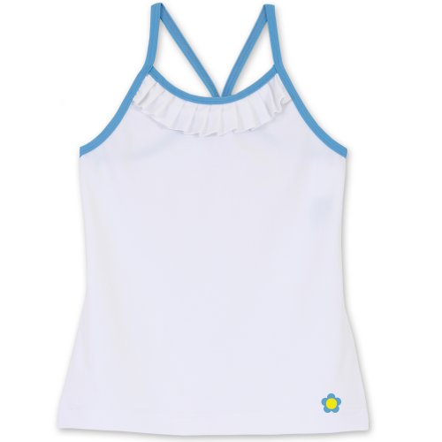 Pleaty tennis top has sky blue spaghetti straps with racerback and pleating detail at neck. High-Performance Dryflex micropoly/lycra blend quickly draws moisture away from the skin for fast evaporation, has a long-lasting anti-bacterial finish, and blocks and absorbs UV Rays for skin protection. Wear with blue pleaty shorts for Pleat Perfection! Read more customer reviews ...